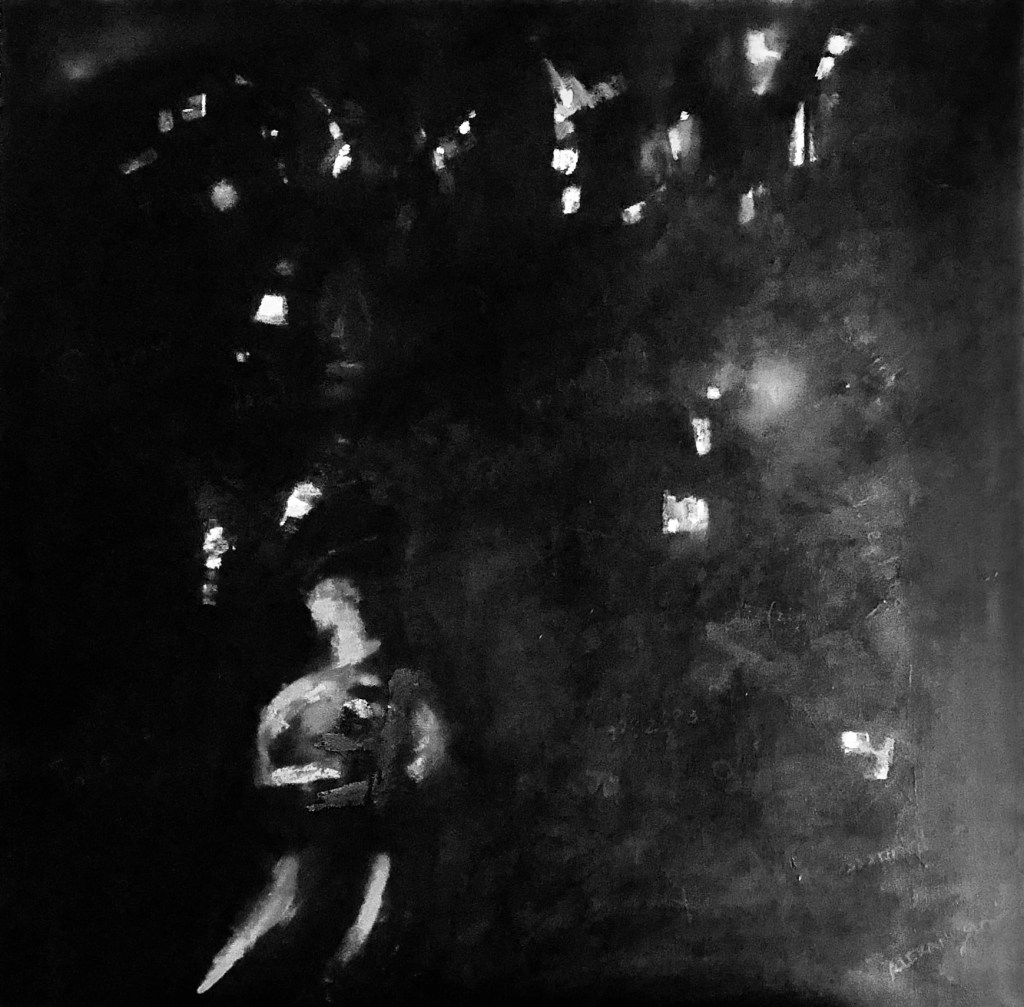 “the dark side of AI” acrylic on canvas, is about an embryonic phase with infinite promises, AI is a magical moment in the history of humanity. For now, machines are not walking next to us, they do not gesture. But they are already present everywhere, they influence and flood! Answering our questions, even unexpressed doubts. They are surprisingly non-human, strange, wonderful and frightening embryos, with no genetically determined future. Despite the benefits, we feel fears and anxiety ? We fear the dark side of AI but we cannot “un-invent” it. The attraction to the phenomenon is so big, the amazement with creation is such, that if an “human abduction” happens it will be with consent !